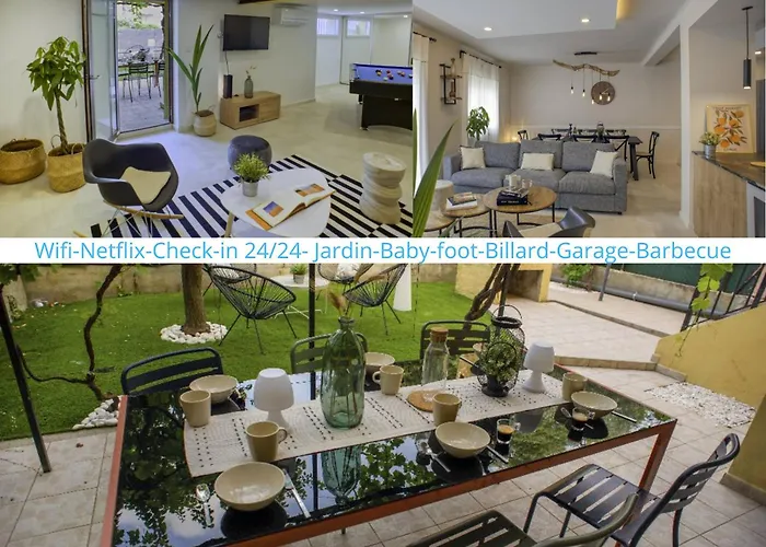 A Maison Spacieuse Et Paisible 1 km-re van a Palais des Rois de Majorque területétől és egy 3 hálószobás ingatlant kínál napozóterasszal. A Maison Spacieuse Et Paisible napozó dekket és biliárdot kínál.